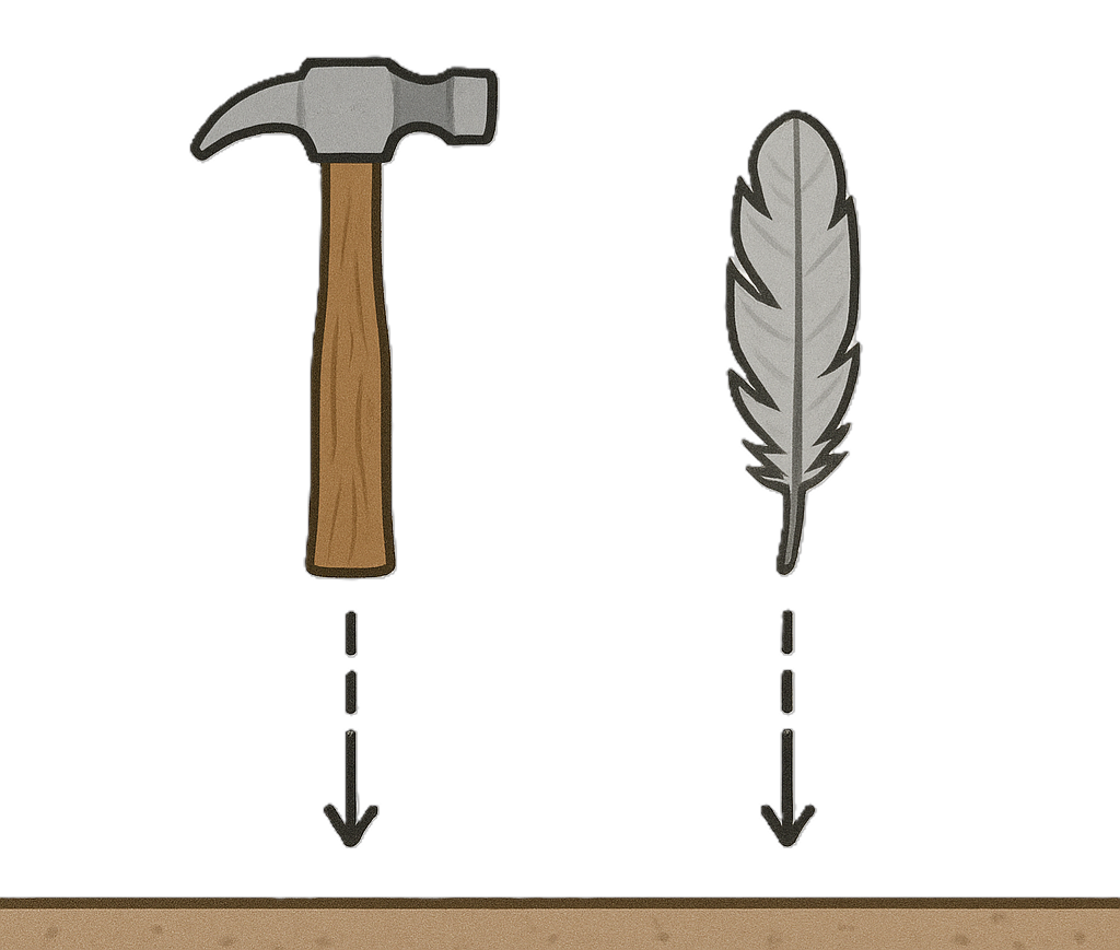 Exercise 1.1: Drop a hammer and a feather in a vacuum. Which hits first?